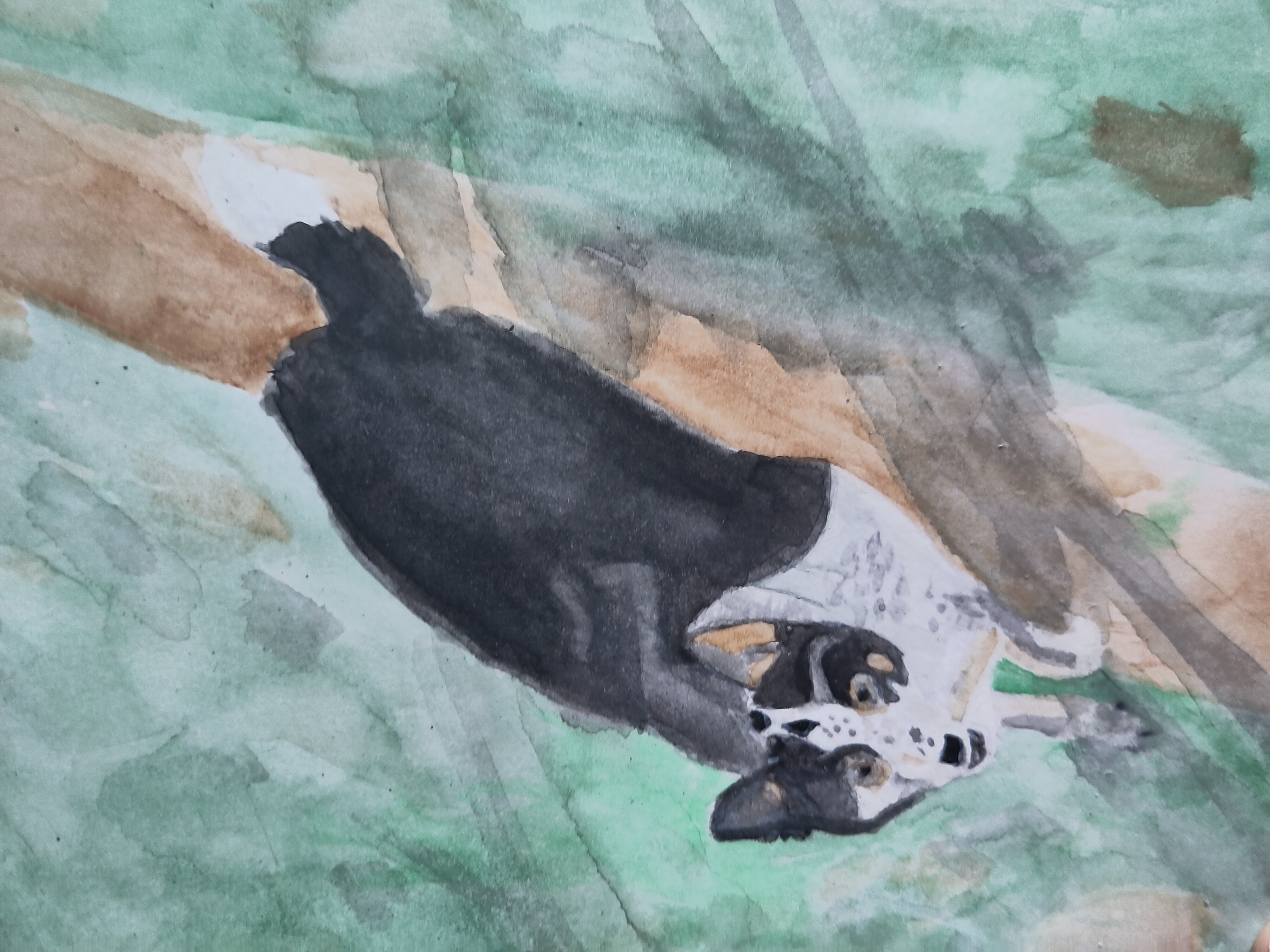 I play the piano to relax, and I'm looking into learning to play the violin again, which I haven't played for a long time. I also paint watercolours when I can, below is a painting of my dog, Pixel, who died from old age in June 2024.